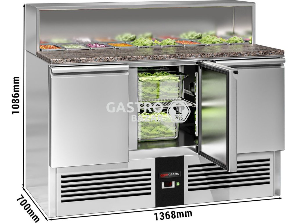 PREMIUM stůl chladící se saladetou - 1,37 x 0,7 m - se 3 dvířky