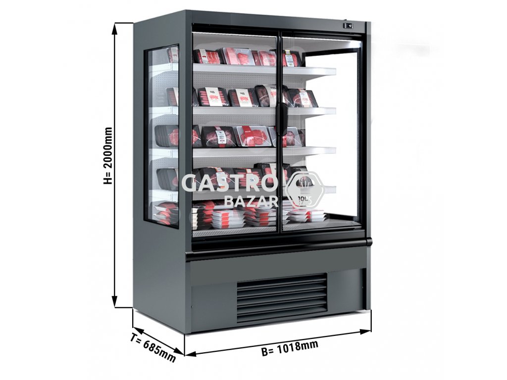 Přístěnná chladící vitrína - 0,93 x 0,68 m - se 4 policemi - šedá