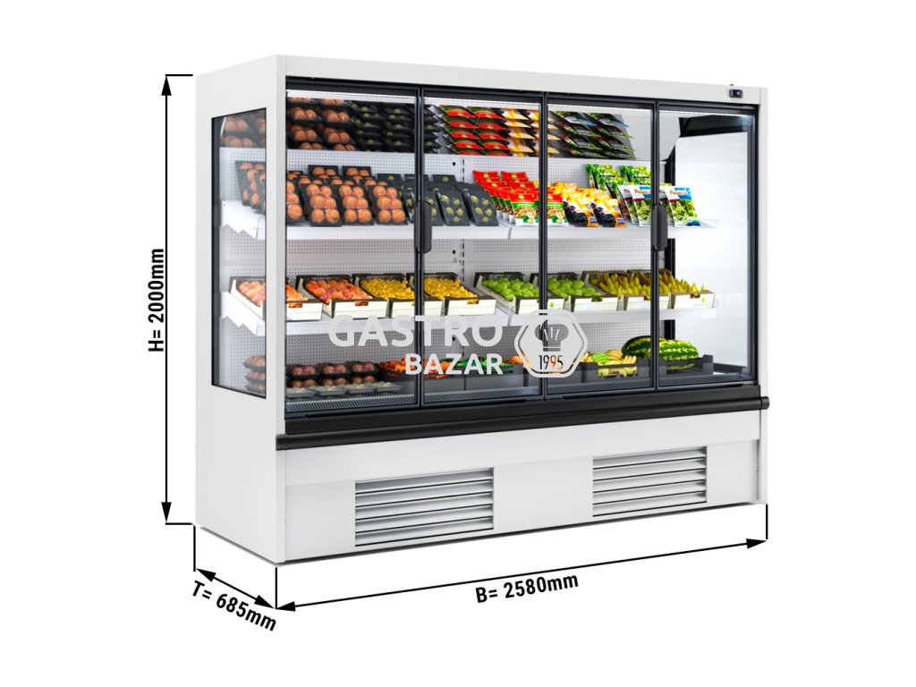 Přístěnná chladící vitrína - 2,50 x 0,68 m - se 2 policemi - bílá