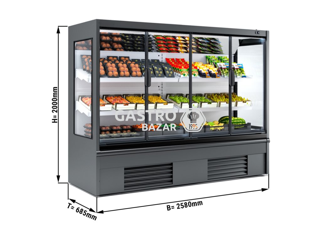 Přístěnná chladící vitrína - 2,50 x 0,68 m - se 2 policemi - šedá