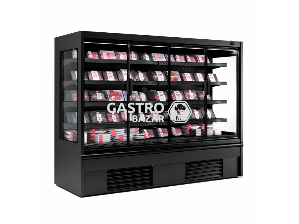 Přístěnná chladící vitrína - 2,50 x 0,68 m - se 4 policemi - černá