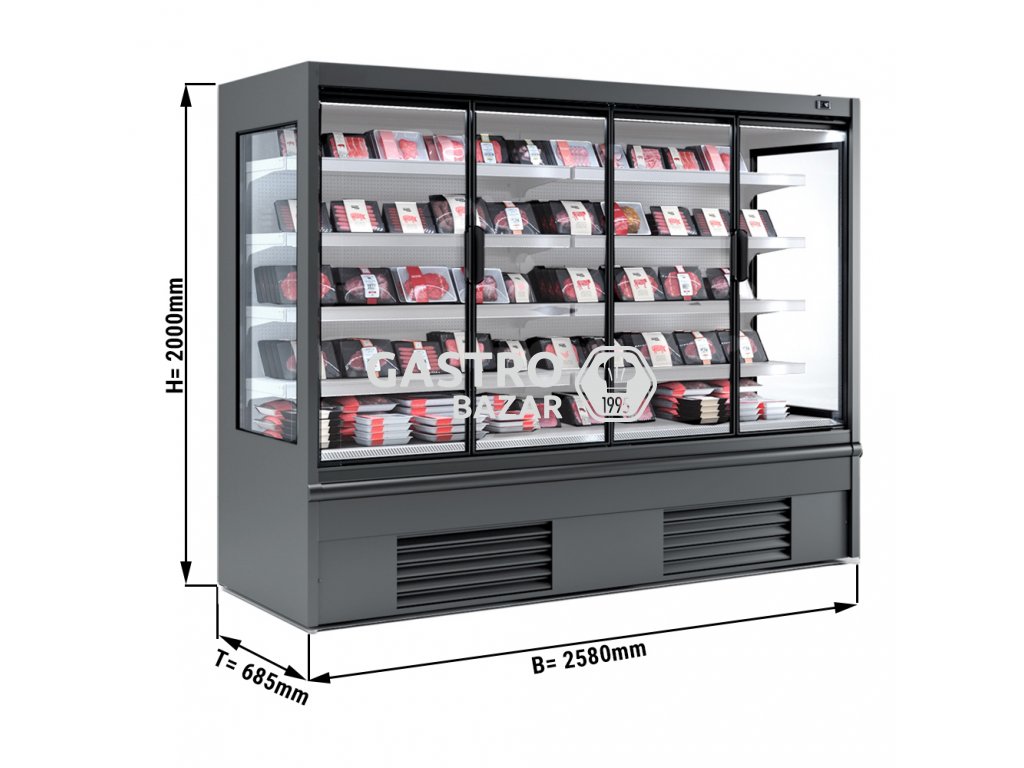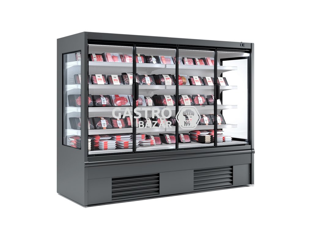Přístěnná chladící vitrína - 2,50 x 0,68 m - se 4 policemi - šedá