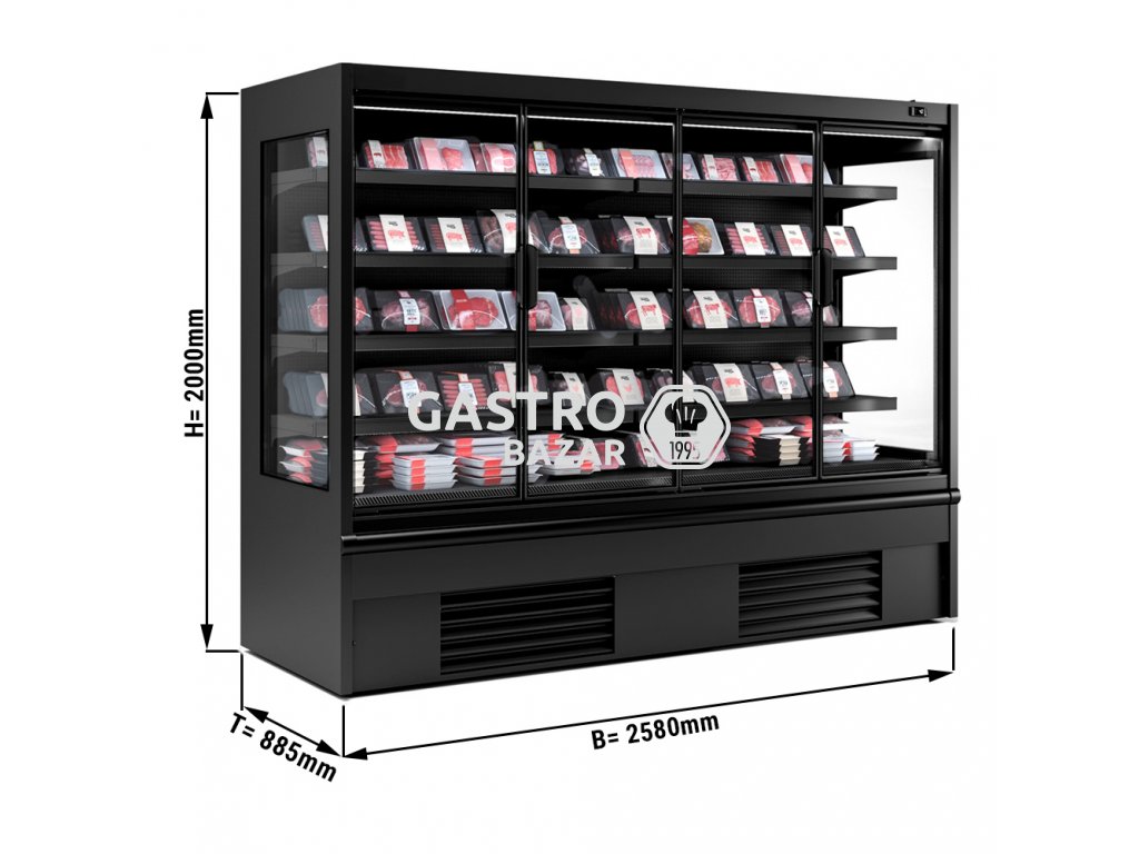 Přístěnná chladící vitrína - 2,58 x 0,88 m - se 4 policemi - černá