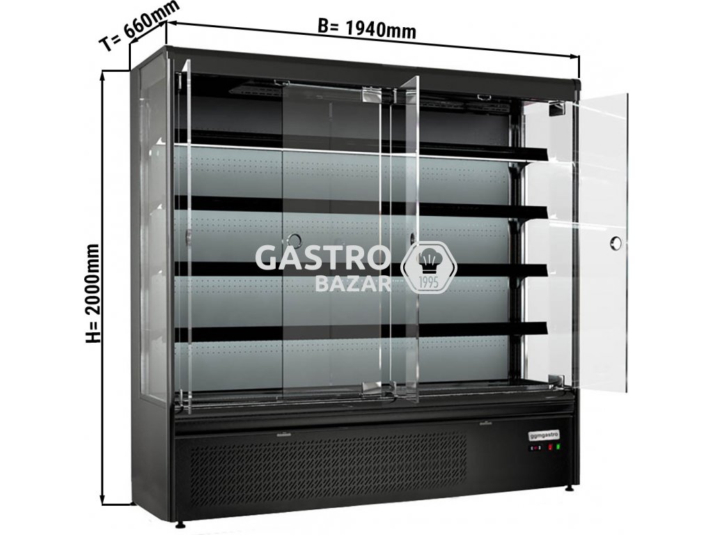 Přístěnná chladící vitrína - 720 litrů se 4 policemi - černá matná