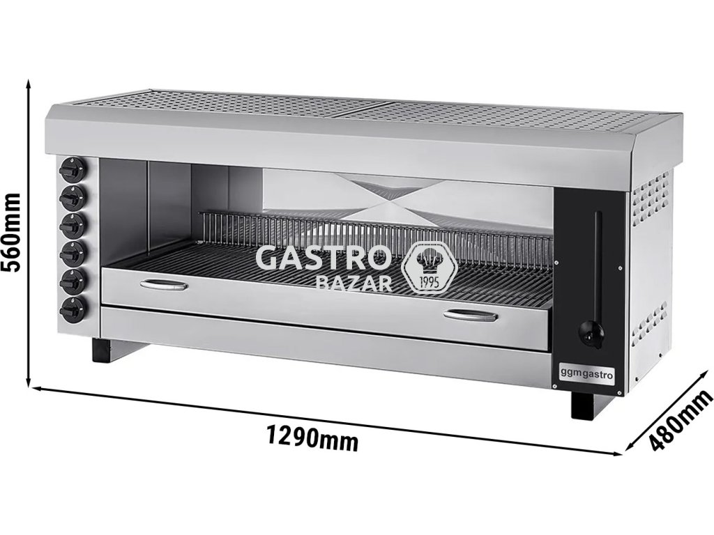 Pita trouba/ Salamander PRO se 6 hořáky - 1,29 m | Trouba na gratinování | Topinkovač | Pečicí gril | Plyn | Gastro