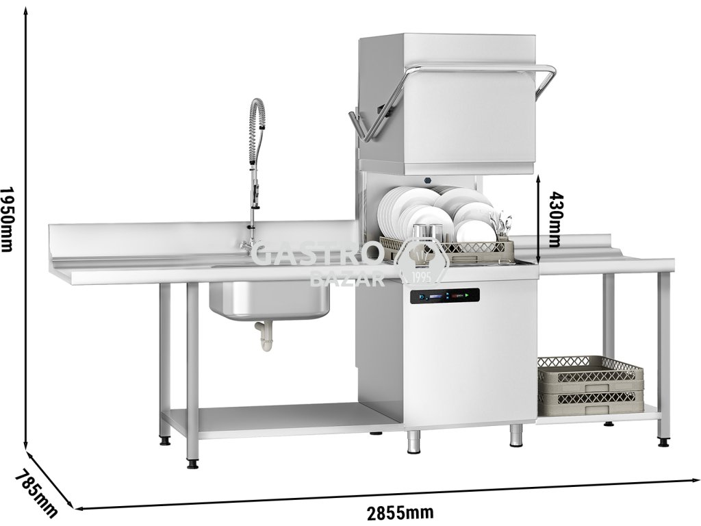 Průchozí myčka nádobí 7.1 kW - s vypouštěcím čerpadlem - s čisticím čerpadlem