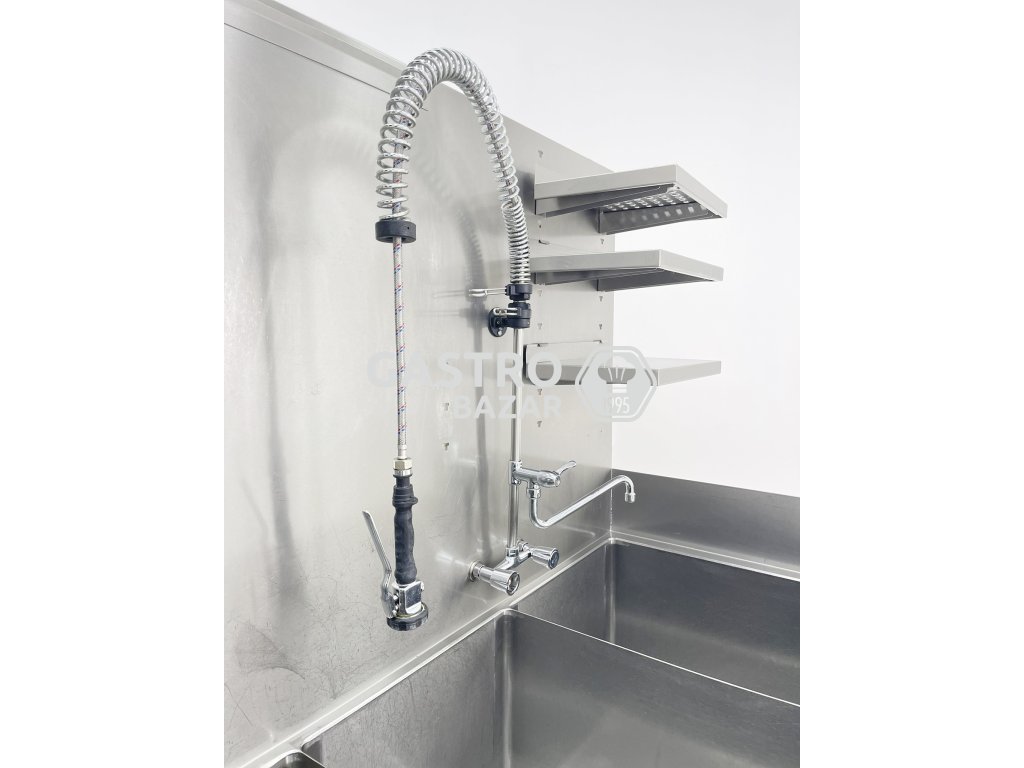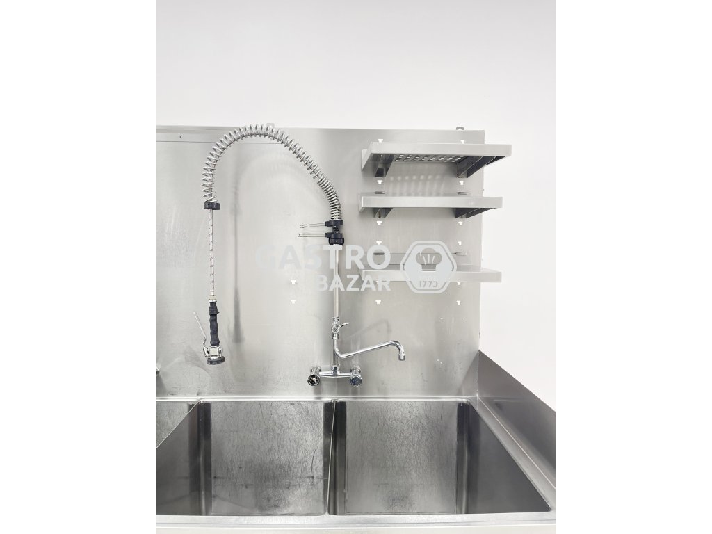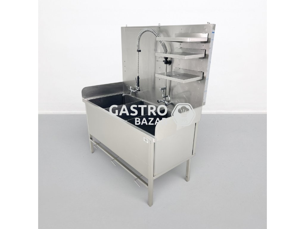 masivní nerezový trojdřez určený pro profesionální gastronomické provozy. Robustní konstrukce s vysokým zadním lemem účinně chrání proti rozstřiku vody.