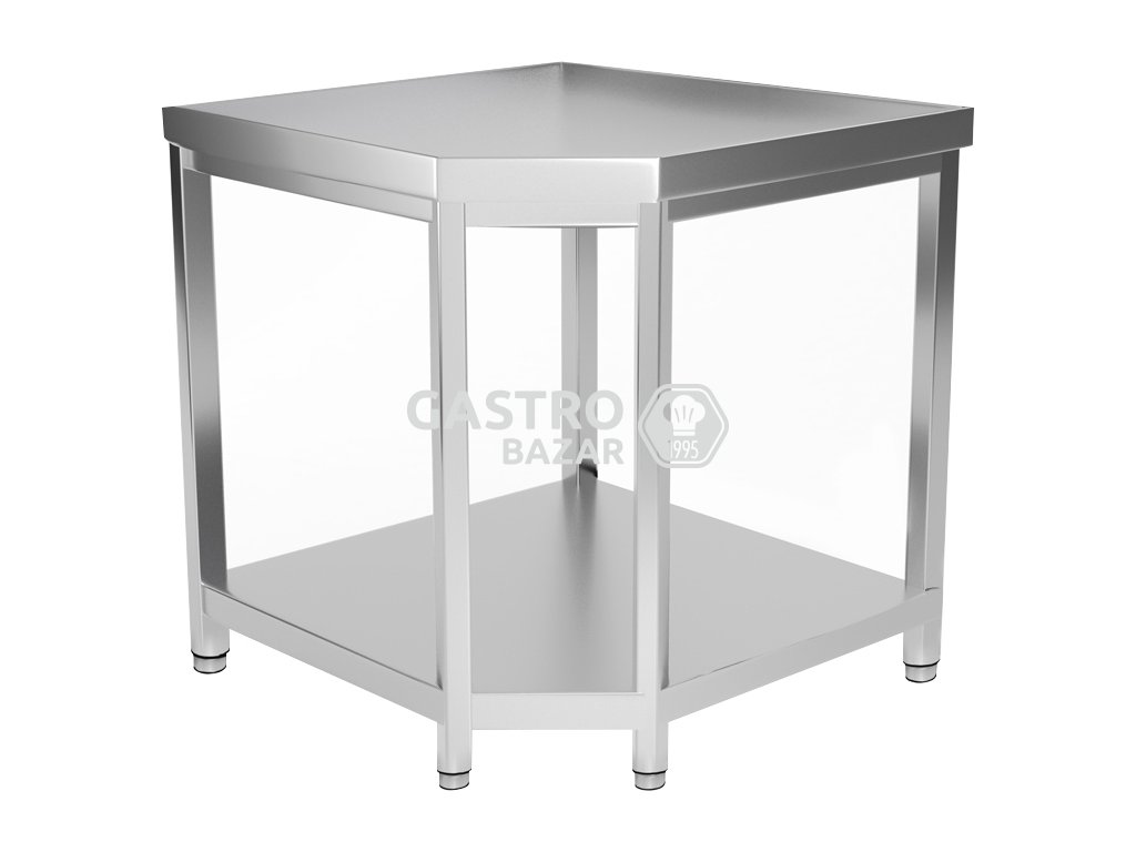Rohový pracovní stůl - 600 mm z nerezové oceli se spodní policí