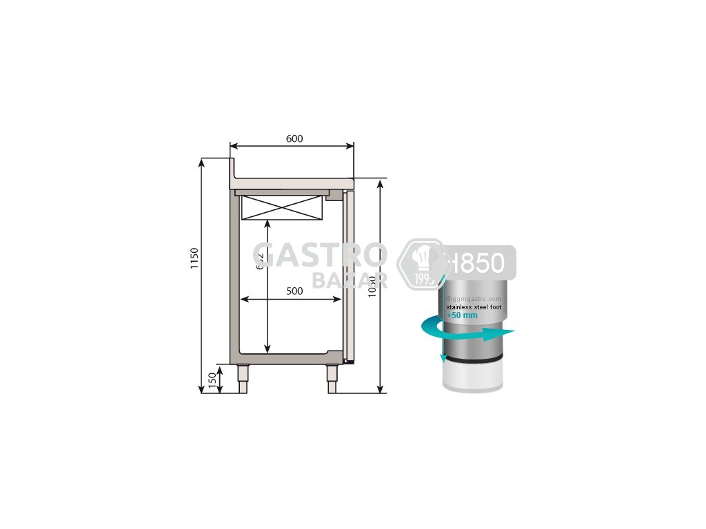 | Výška pracovnej dosky | 1050 mm (+ 50 mm výškovo nastaviteľné nohy) |