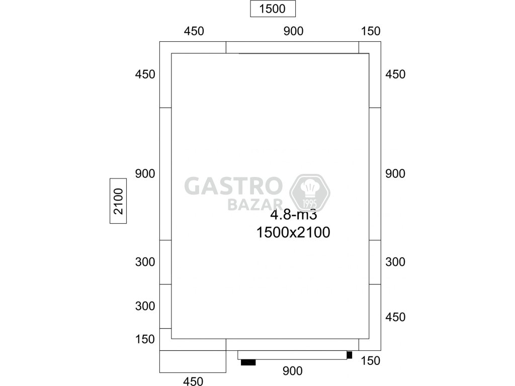 Chladiaci box- 1,5 x 2,1 m - výška: 2,01 m - 4,8 m³ - vrátane nástennej chladiacej jednotky PLUS