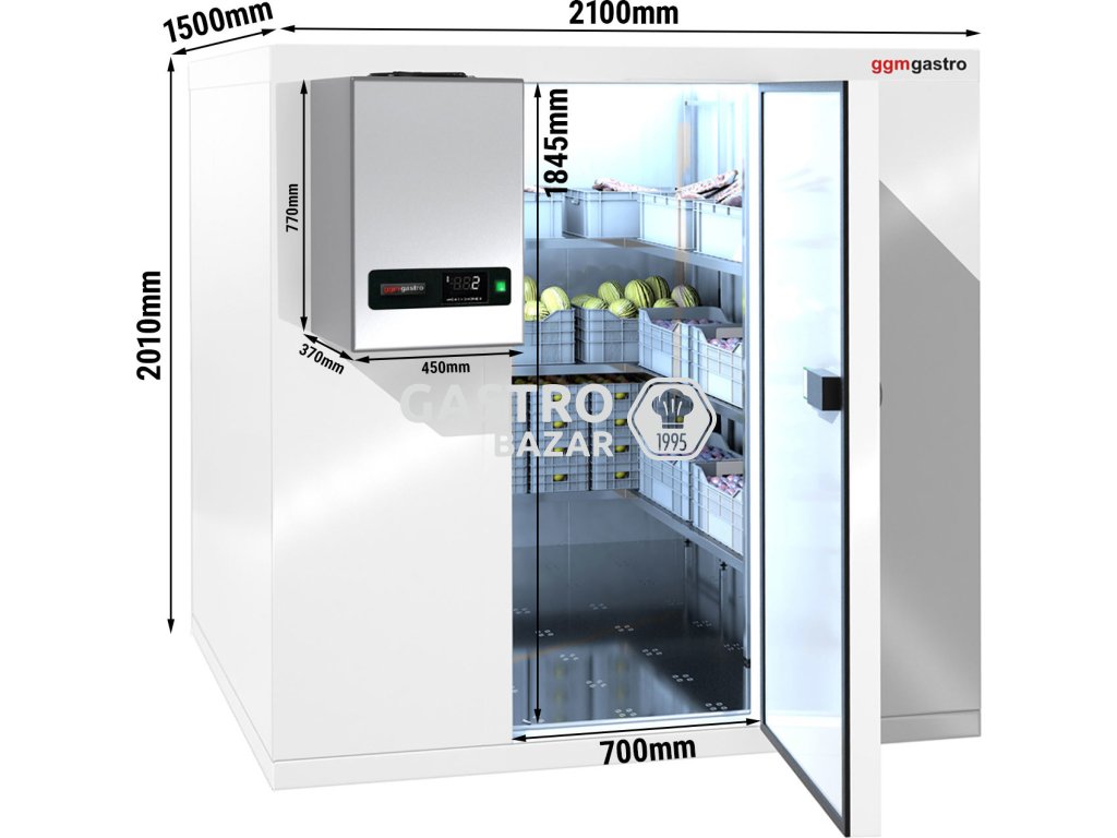 Chladiaci box - 2,1 x 1,5 m - výška: 2,01 m - 4,8 m³ - vrátane nástennej chladiacej jednotky PLUS