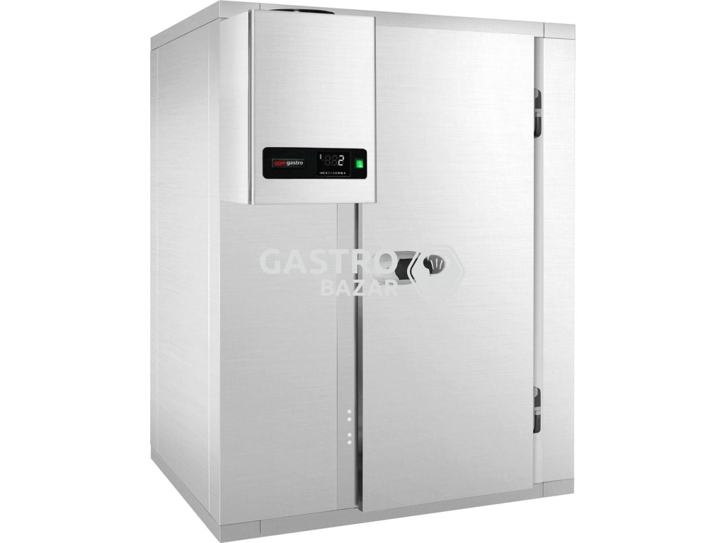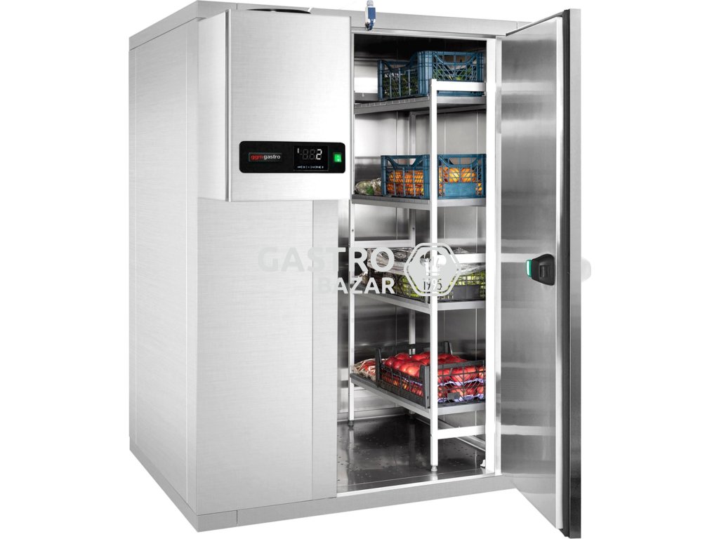 Chladiaci box z nerezovej ocele - 1,5 x 1,2 m - výška: 2,01 m - 2,6 m³ - vrátane nástennej chladiacej jednotky PLUS