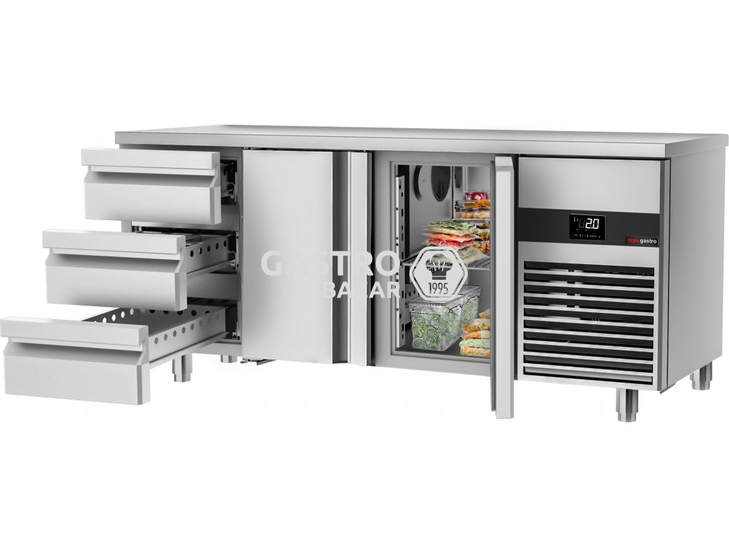 Chladiaci pult PREMIUM - 1,86 x 0,7 m - s 2 dvierkami a 3 zásuvkami 1/3