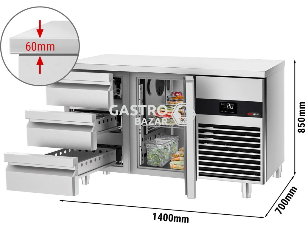 Chladiaci stôl PREMIUM - 1400x700mm - 1 dvierka a 3 zásuvky