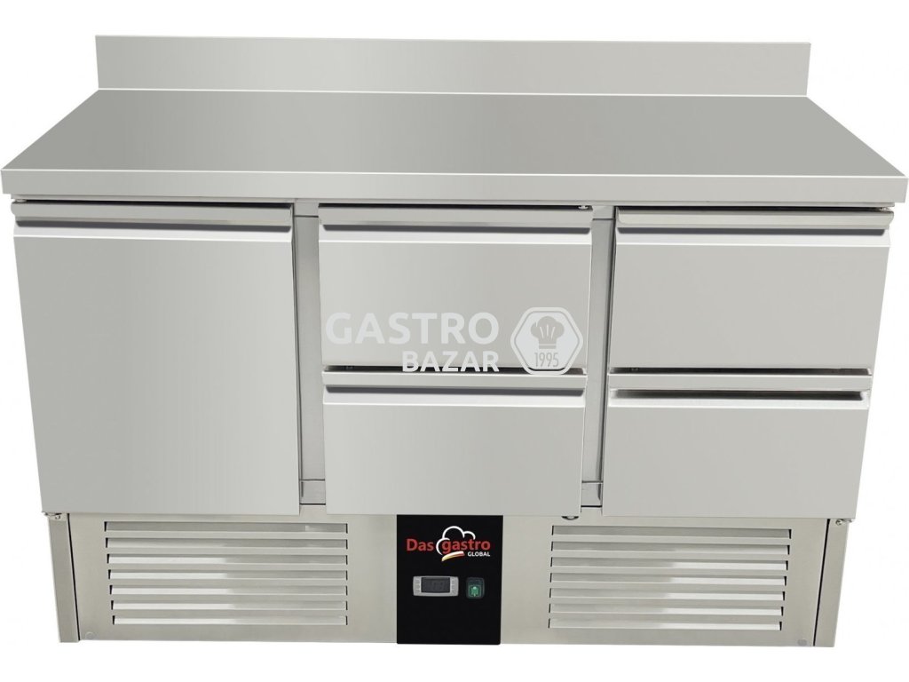 Chladiaci stôl / prípravný stôl 1,37 mx 0,7 m - s 1 dverami a 4 šuplíkmi v pravo a zadným lemom