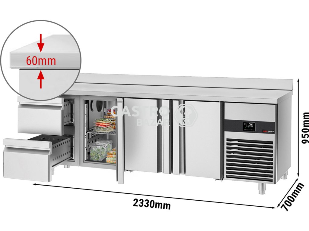 Chladiaci stôl/pult PREMIUM - 2,3 x 0,7 m - s 3 dverami a 2 zásuvkami 1/2
