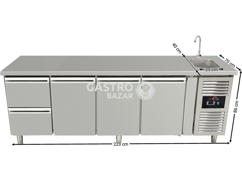 Chladiaci stôl s drezom s 3 dvierkami a 2 šuplíkmi vľavo