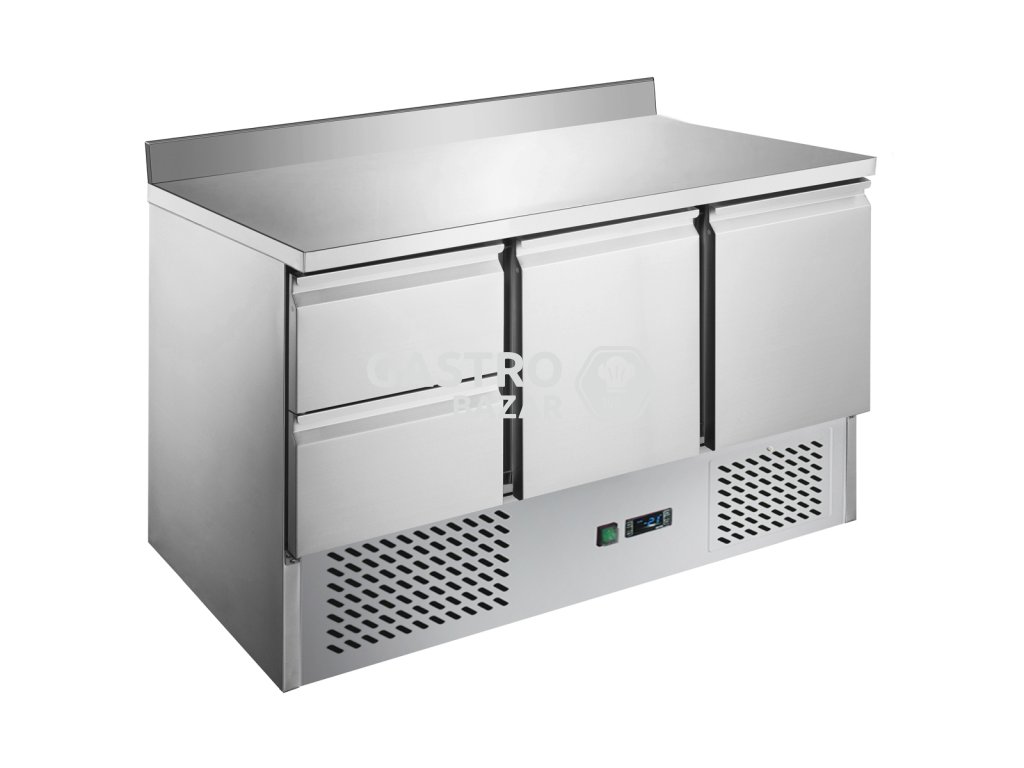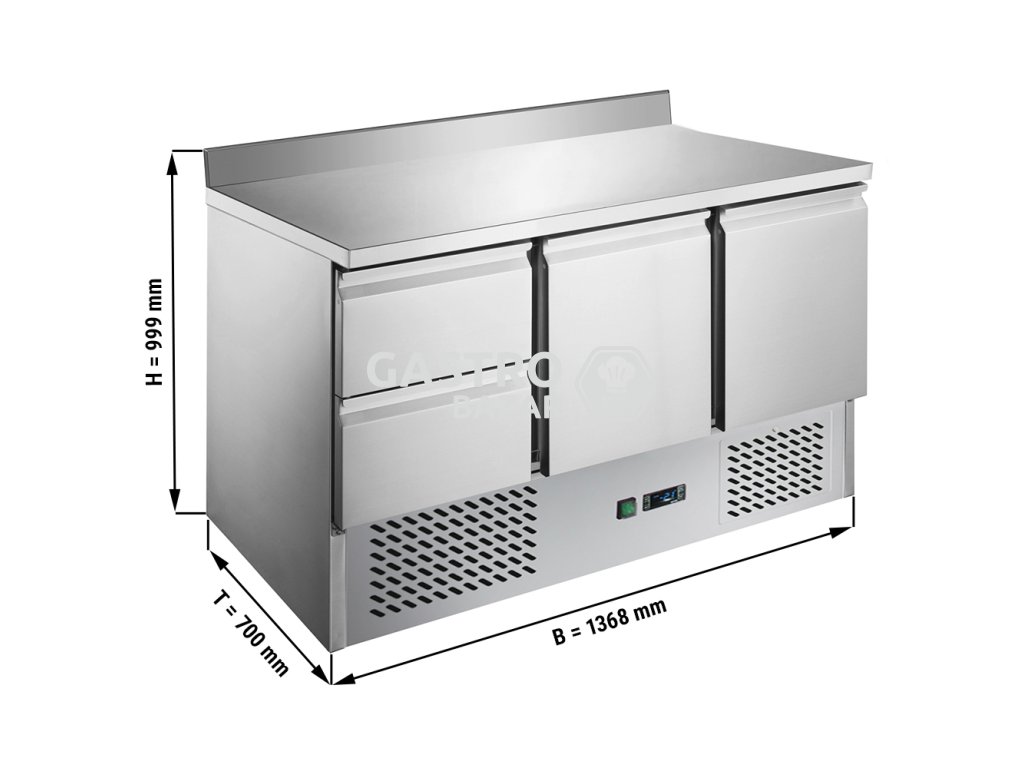 Chladiaci stôl saladeta / pizzu ECO - 1,37 x 0,7 m - s 2 dverami, 2 zásuvkami a zadným krytom