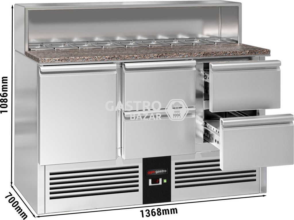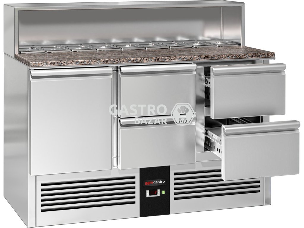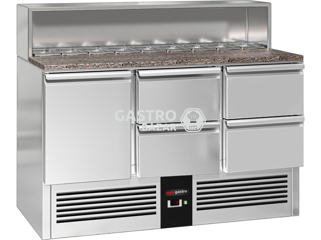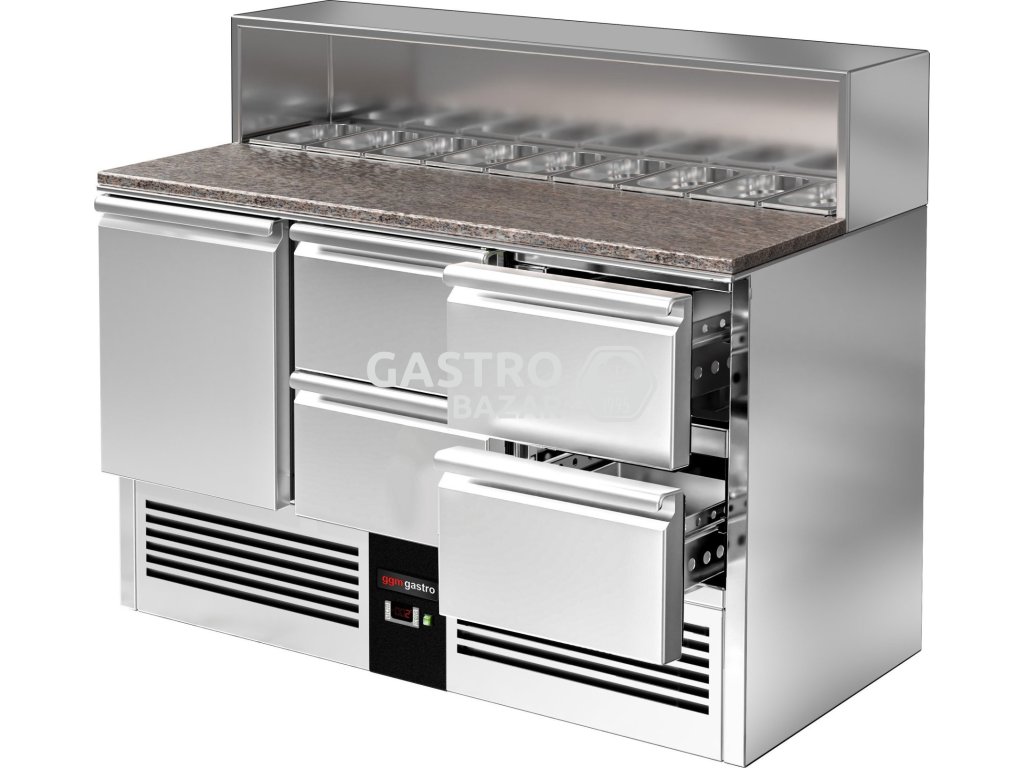 Chladiaci stôl-saladeta / pizzu PREMIUM - 1,37 x 0,7 m - s 1 dvierkami a 4 zásuvkami 1/2