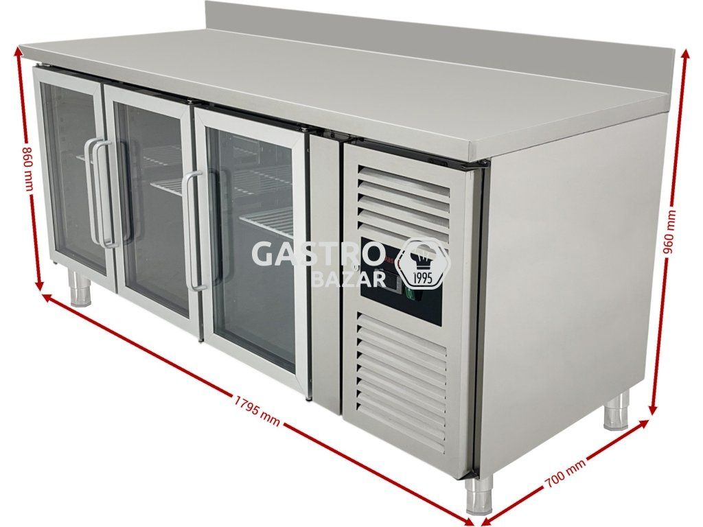 Chladiaci stôl s 3 sklenenými dvierkami a zadným lemom