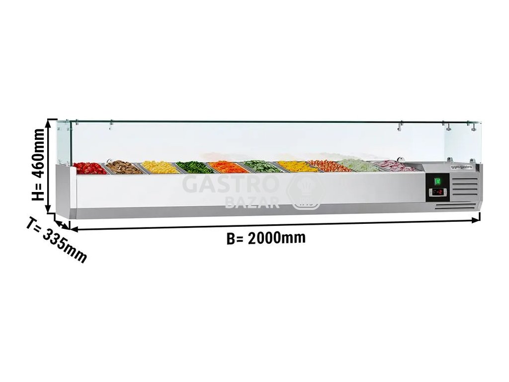 Chladiaca vitrína PREMIUM - 2,0 x 0,34 m - pre 10x 1/4 GN
