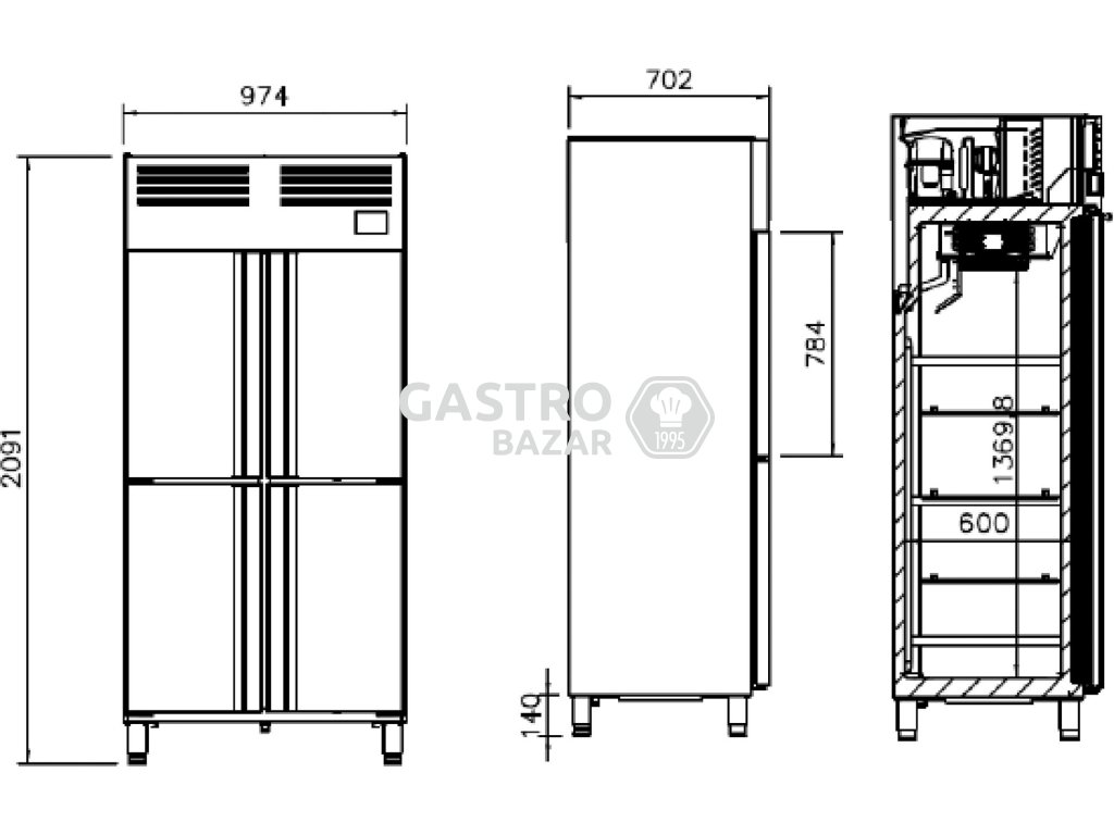 Chladnička PREMIUM PLUS - GN 1/1 - 745 litrov - 4 nerezové polovičné dvere