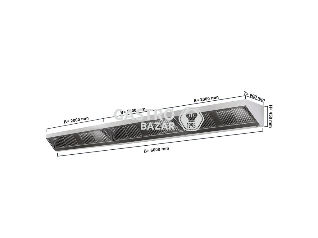 - Vonkajšie rozmery prvého digestora: Š x H x V: 2000 x 900 x 450 mm