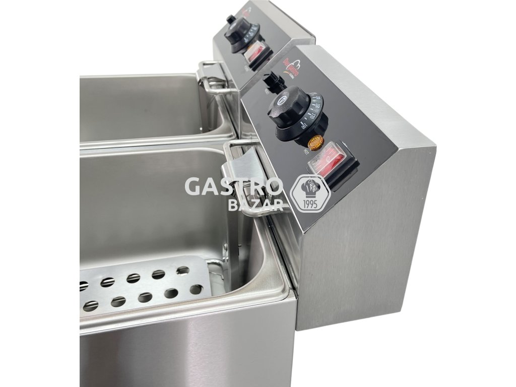Spoľahlivá elektrická fritéza s dvoma samostatnými vaňami, každá s objemom 6 litrov, je navrhnutá na každodenné použitie v gastro prevádzkach, kde je potrebné pripravovať viac druhov vyprážaných pokrmov naraz – rýchlo, efektívne a bezpečne. Ideálna voľba pre reštaurácie, bistra, stánky aj food trucky. Ponúka jednoduchú obsluhu, ľahkú údržbu a vysoký výkon.