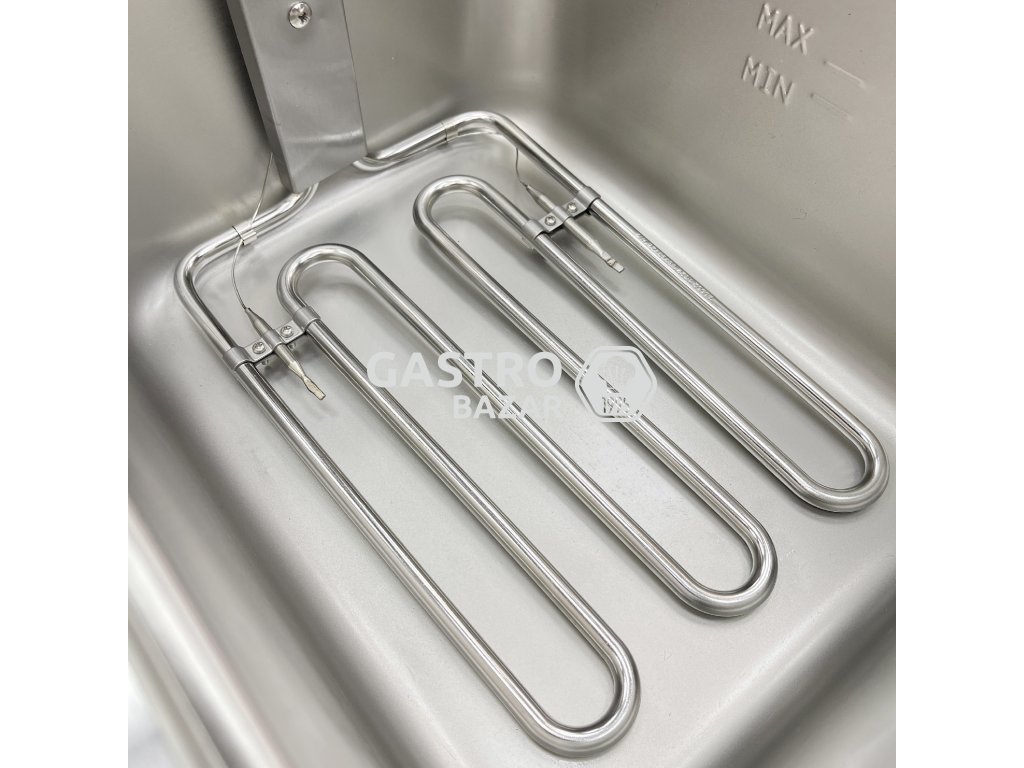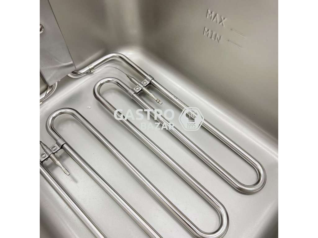 • Dve nerezové smažiace vane, každá s rozmermi 26,5 × 32,5 × 15 cm (možno ľahko nahradiť GN 1/2)