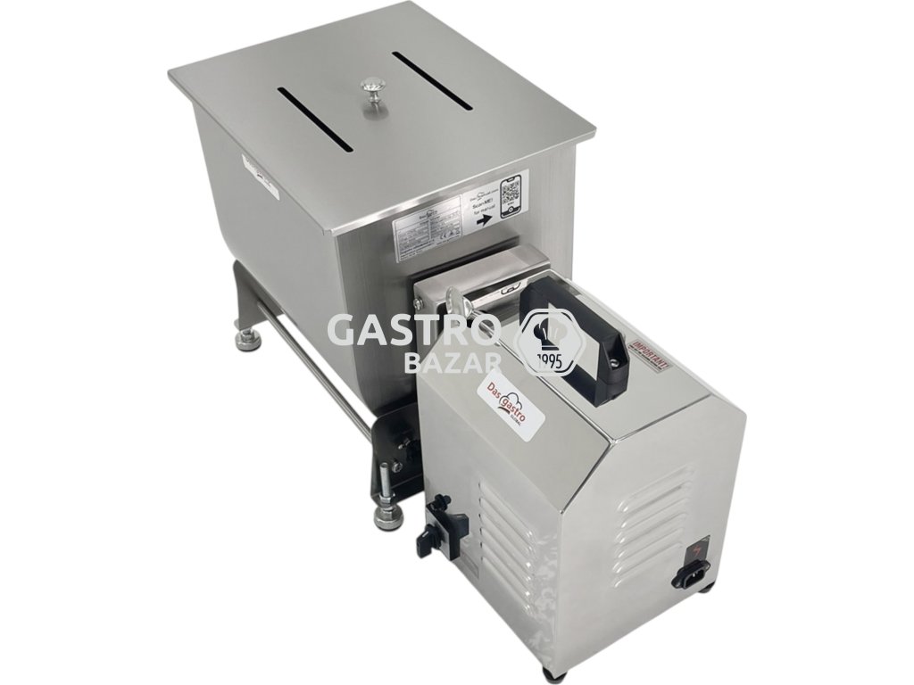 Profesionálna elektrická miešačka na mäso MDM30 je určená na rýchle, rovnomerné a hygienické miešanie mletého mäsa, korenia a ďalších prísad. Vďaka robustnému telu a výklopnej nádobe zaisťuje jednoduchú manipuláciu, efektívne spracovanie surovín a maximálny komfort pri čistení. Tento model je ideálny pre mäsiarske a údenárske prevádzky, mäsové dielne a gastronomické výrobne , ktoré vyžadujú výkon, spoľahlivosť a precízne výsledky.