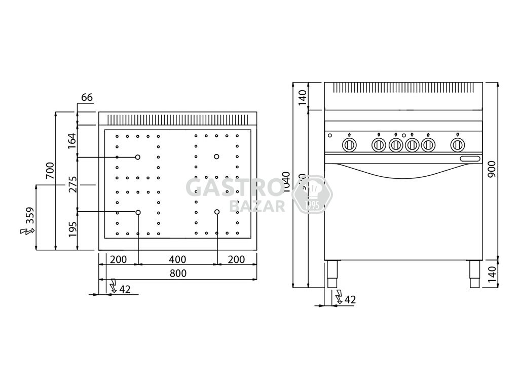 Infračervený sporák - 4 platničky (12,8 kW) + statická elektrická rúra (7,5 kW)