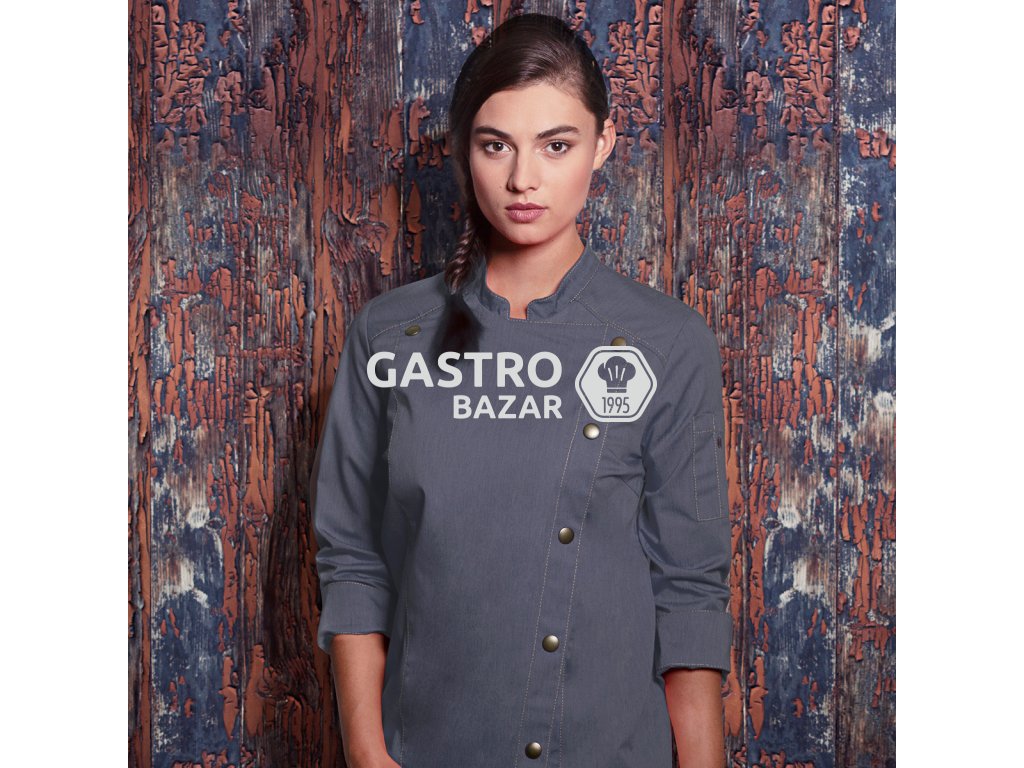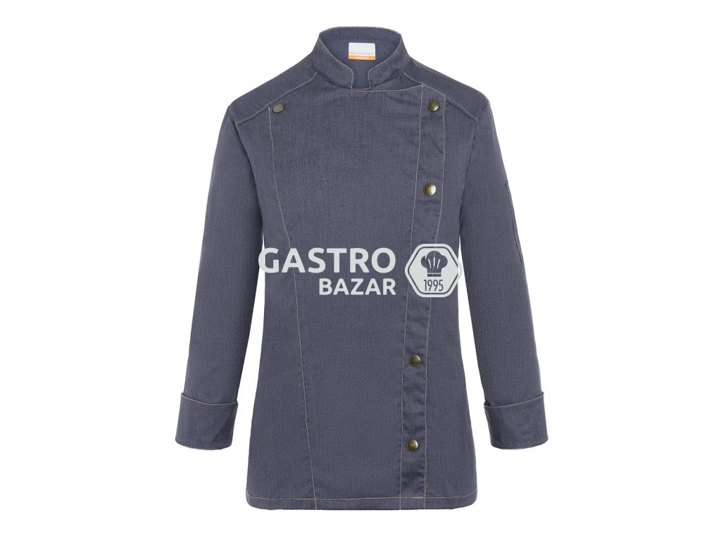 - Trendy dámska kuchárska bunda v džínsovom vzhľade so štíhlou siluetou