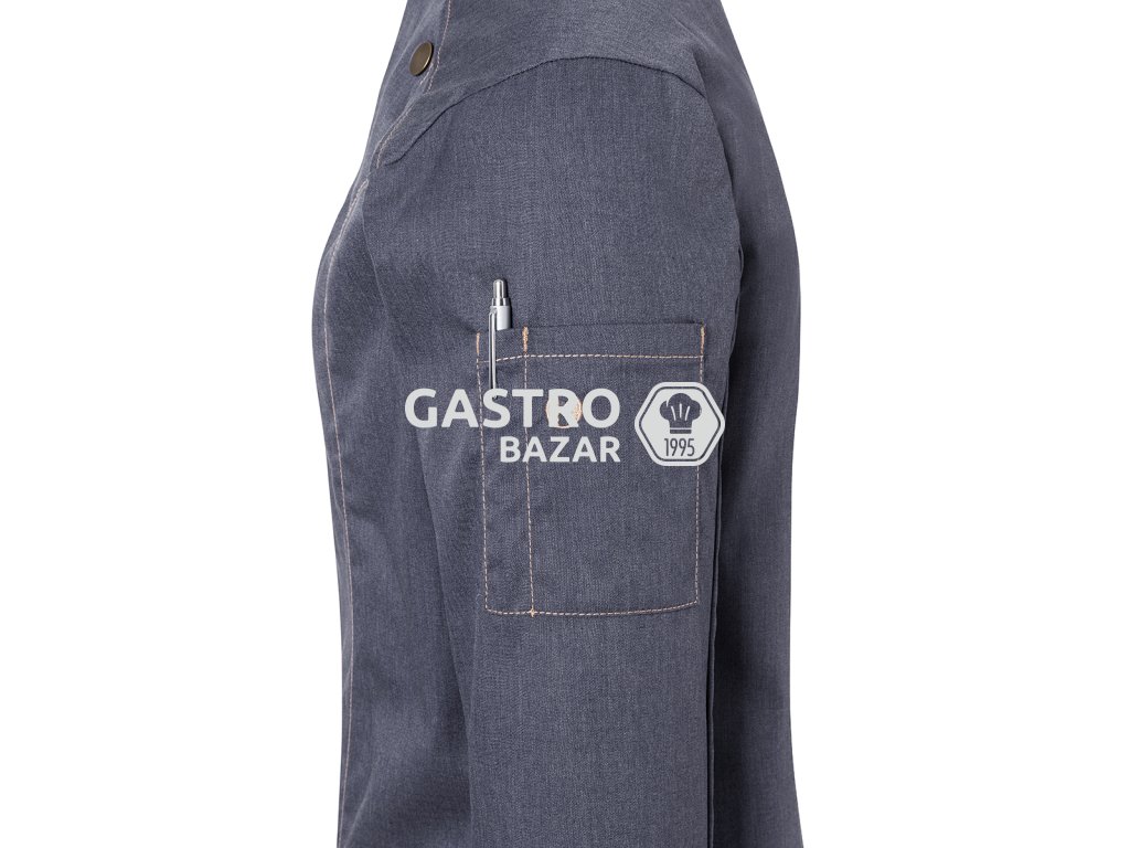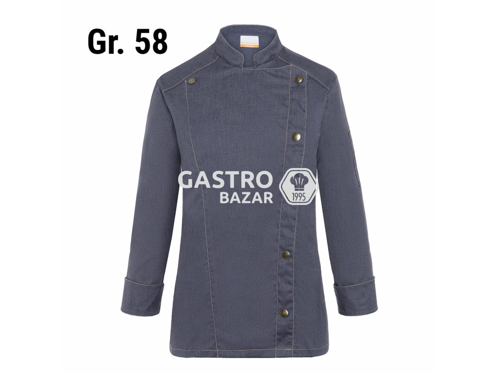 - Trendy dámska kuchárska bunda v džínsovom vzhľade so štíhlou siluetou