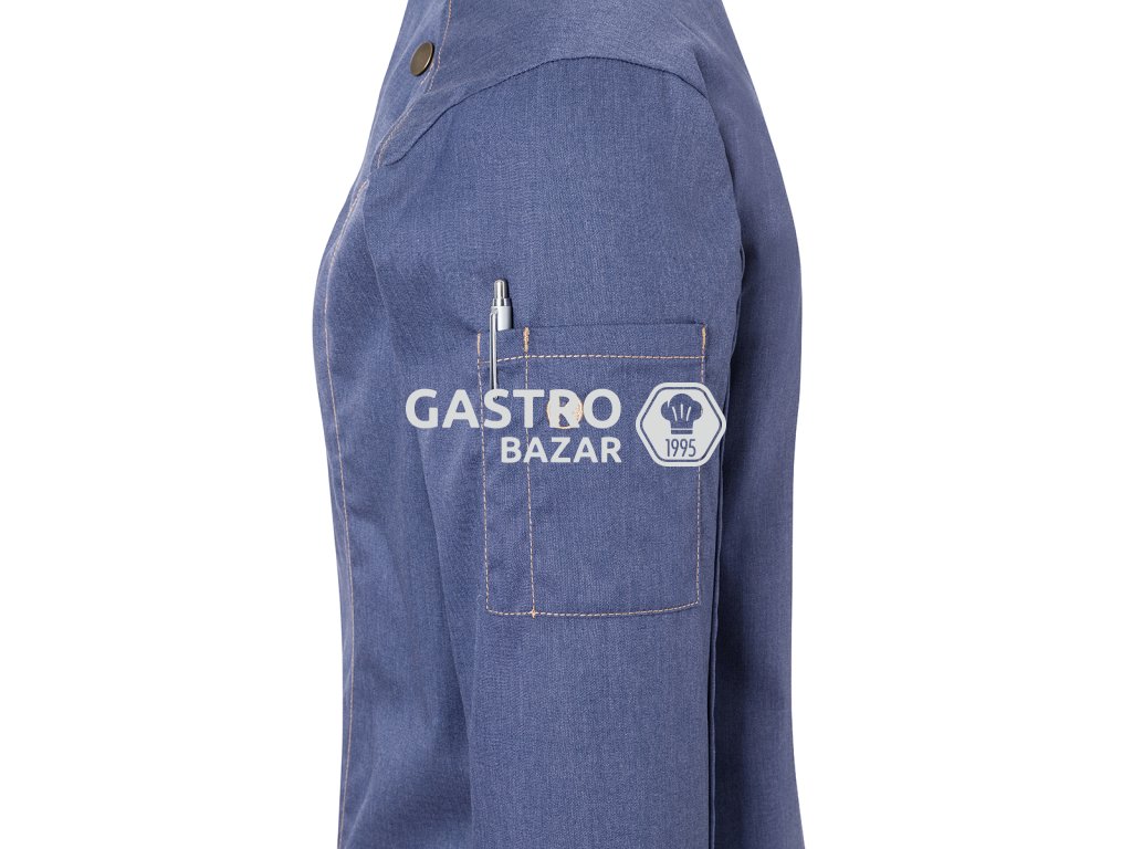 - Trendy dámska kuchárska bunda v džínsovom vzhľade so štíhlou siluetou