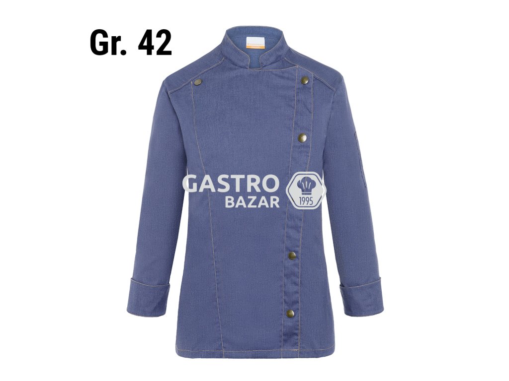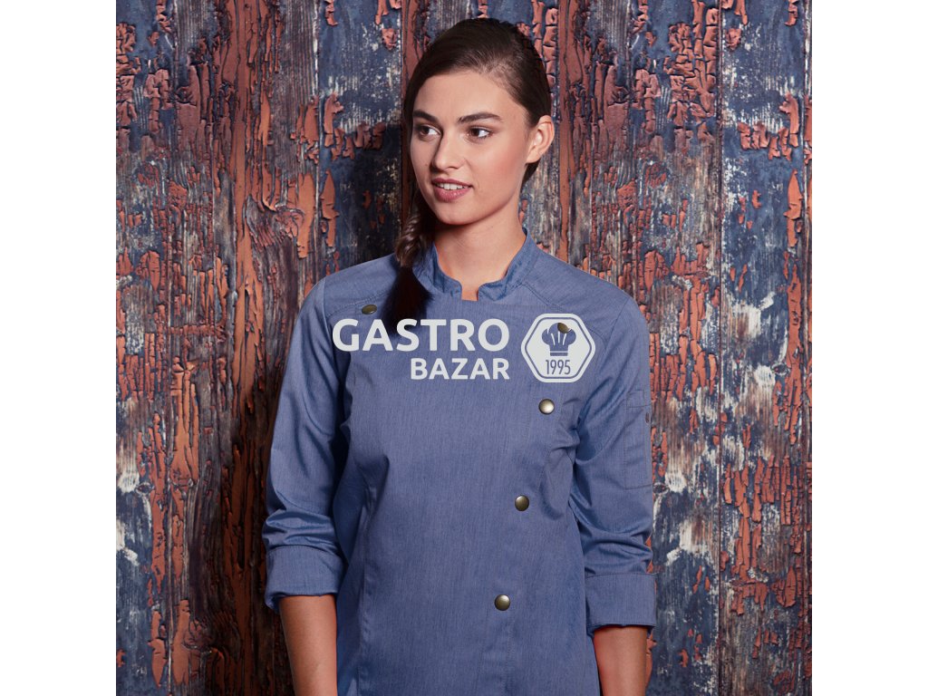 - Trendy dámska kuchárska bunda v džínsovom vzhľade so štíhlou siluetou
