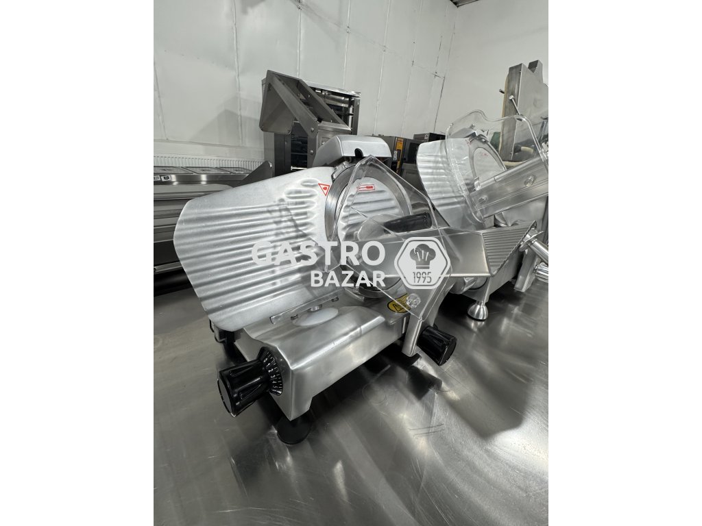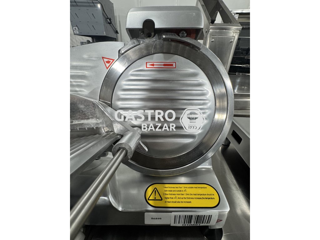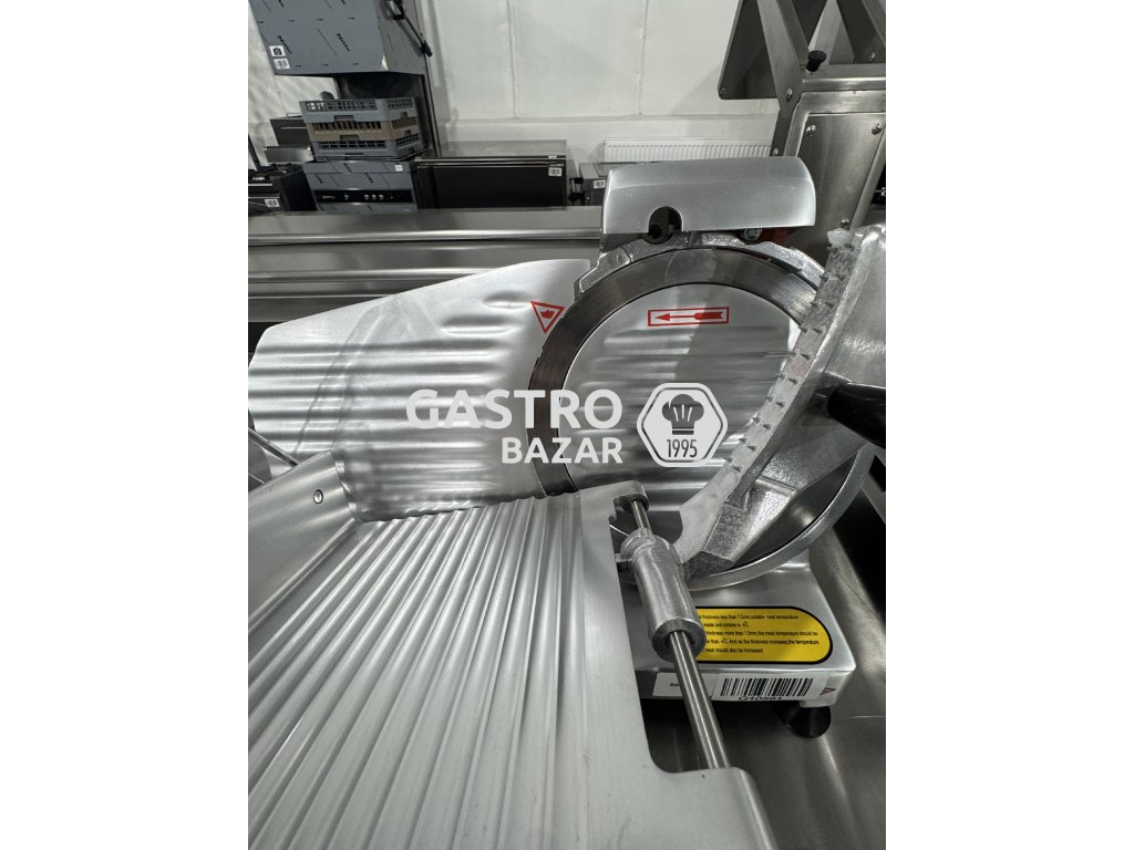 Profesionální kráječ s přesným a plynulým mechanickým ovládáním. Díky ochraně rukou zajišťuje bezpečnou obsluhu a je vybaven ochranou proti stříkající vodě. Součástí je vyměnitelný brusný kámen pro snadnou údržbu nože.