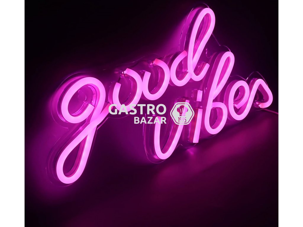 LED svetelná ceduľa - Good Vibes 2 - ružová - 330x180 mm