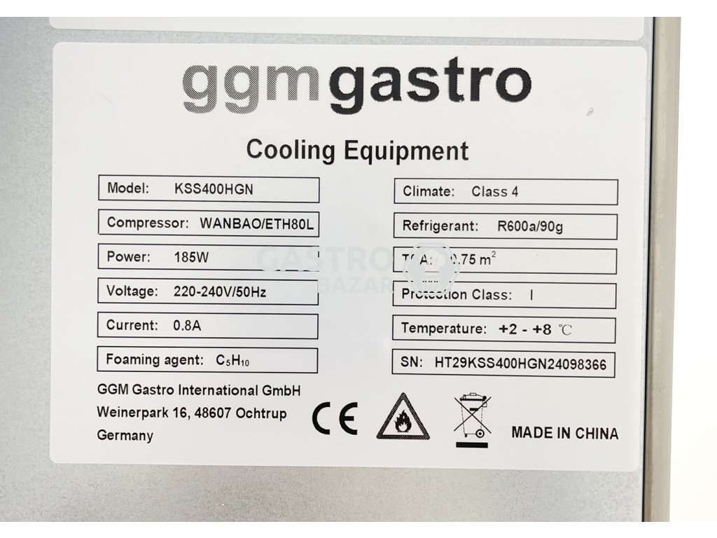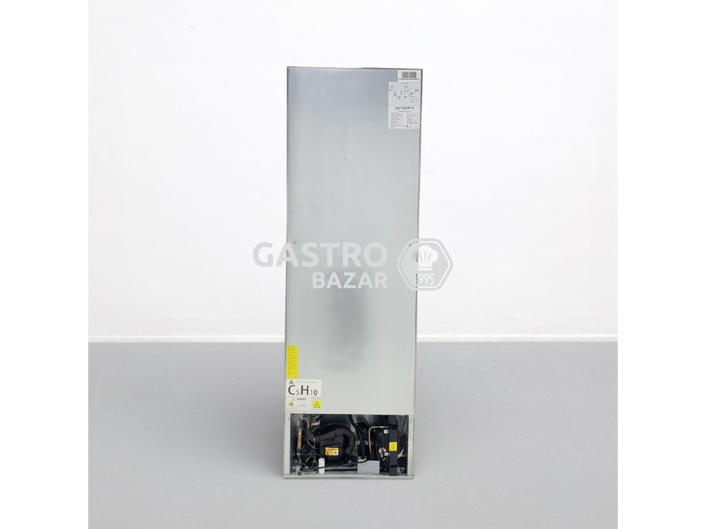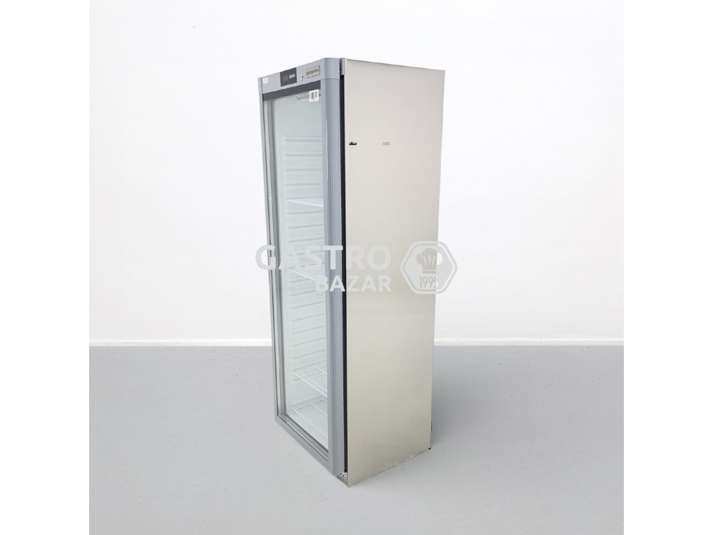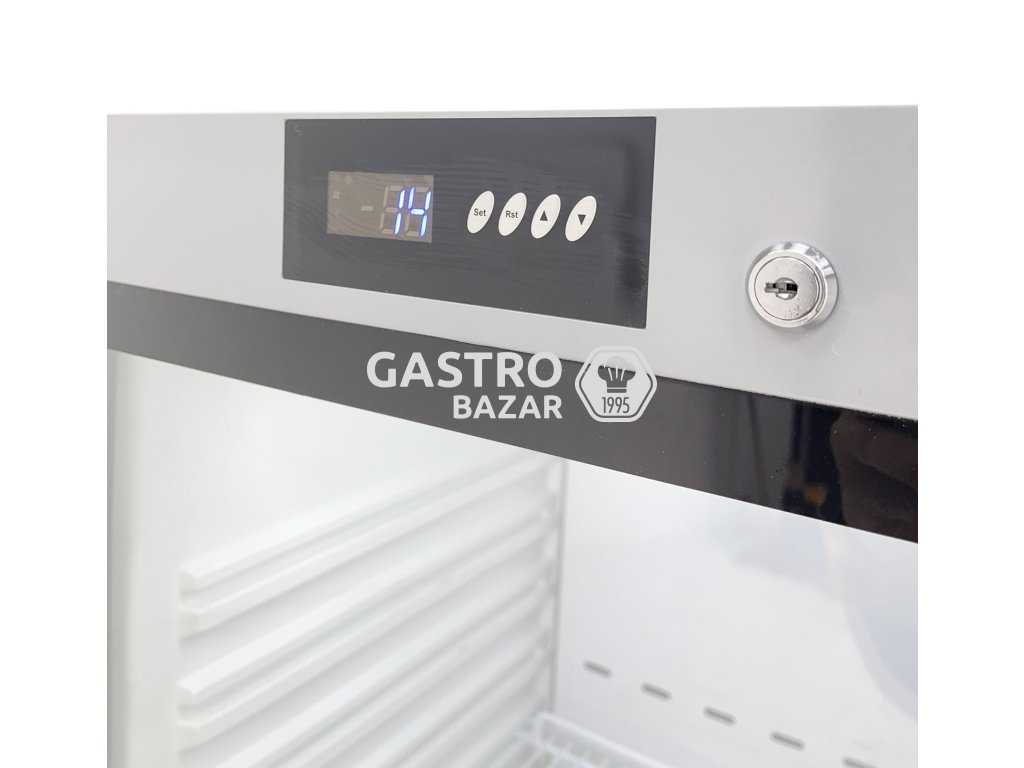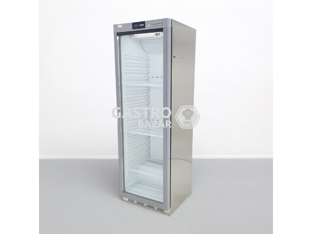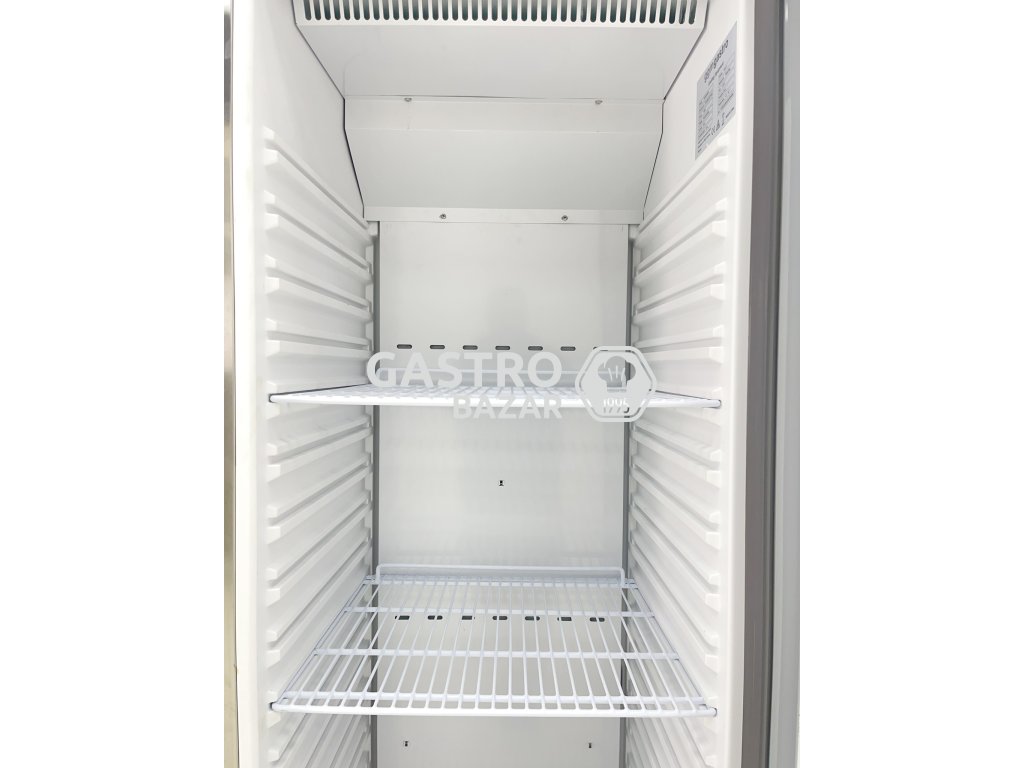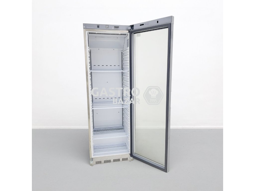 Profesionální chladicí skříň se skleněnými dveřmi s tichým provozem, digitálním termostatem a kvalitní izolací 40 mm. Nabízí stabilní a úsporné chlazení, velkou kapacitu a variabilní uložení díky výškově nastavitelným roštům. Tělo je z nerezové oceli AISI 304, vnitřní prostor z plastu se zaoblenými rohy pro snadnější údržbu. Závěsy dveří nelze přehodit.