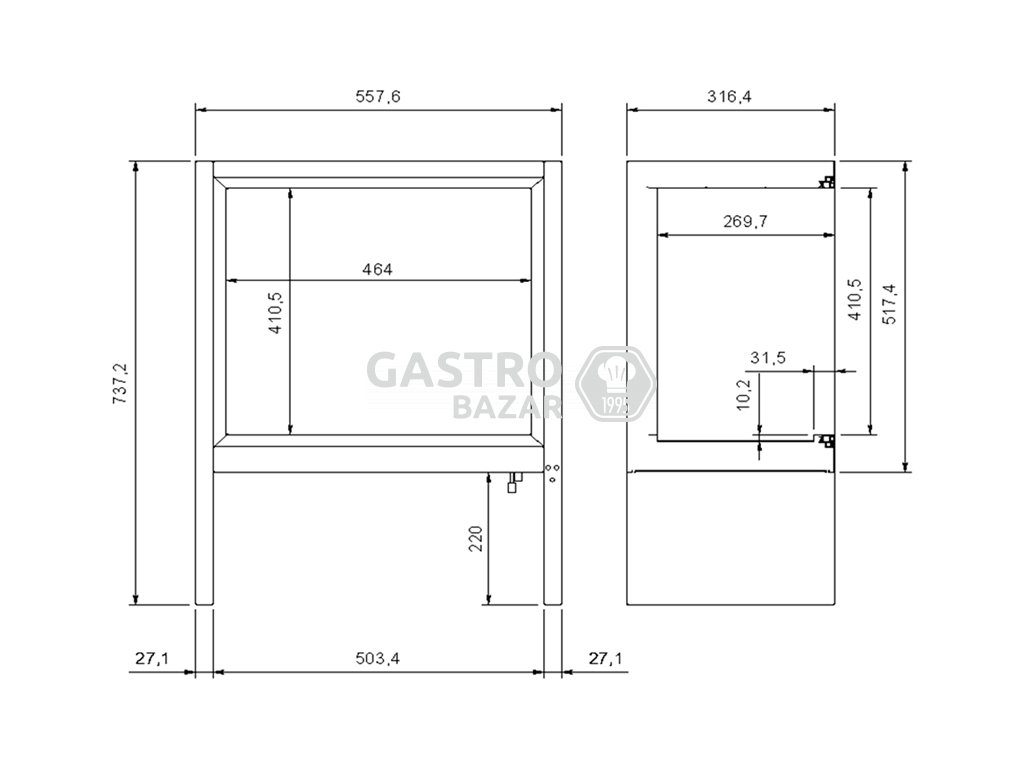 - Vonkajšie rozmery Š x H x V: 558 x 365 x 765 mm