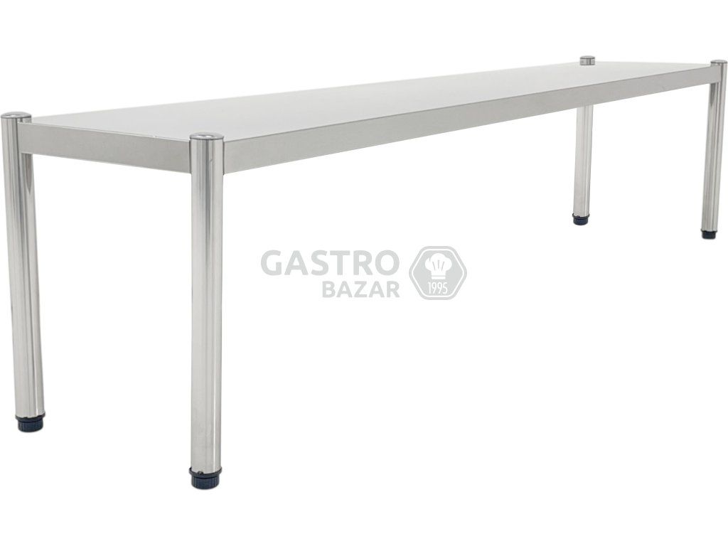 Funkčná a robustná nadstavná polica určená pre profesionálne kuchyne a gastronomické prevádzky. Ideálne na inštaláciu nad pracovnými stolmi, kde umožňuje prehľadné a hygienické uskladnenie riadu, surovín či pomôcok.