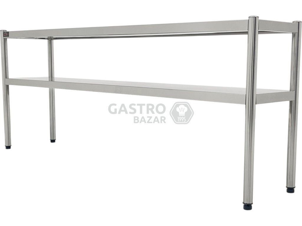 Funkčná a robustná nadstavná polica určená pre profesionálne kuchyne a gastronomické prevádzky. Ideálne na inštaláciu nad pracovnými stolmi, kde umožňuje prehľadné a hygienické uskladnenie riadu, surovín či pomôcok. Dvojpolicové prevedenie zvyšuje využiteľný priestor bez obmedzenia pracovnej plochy.