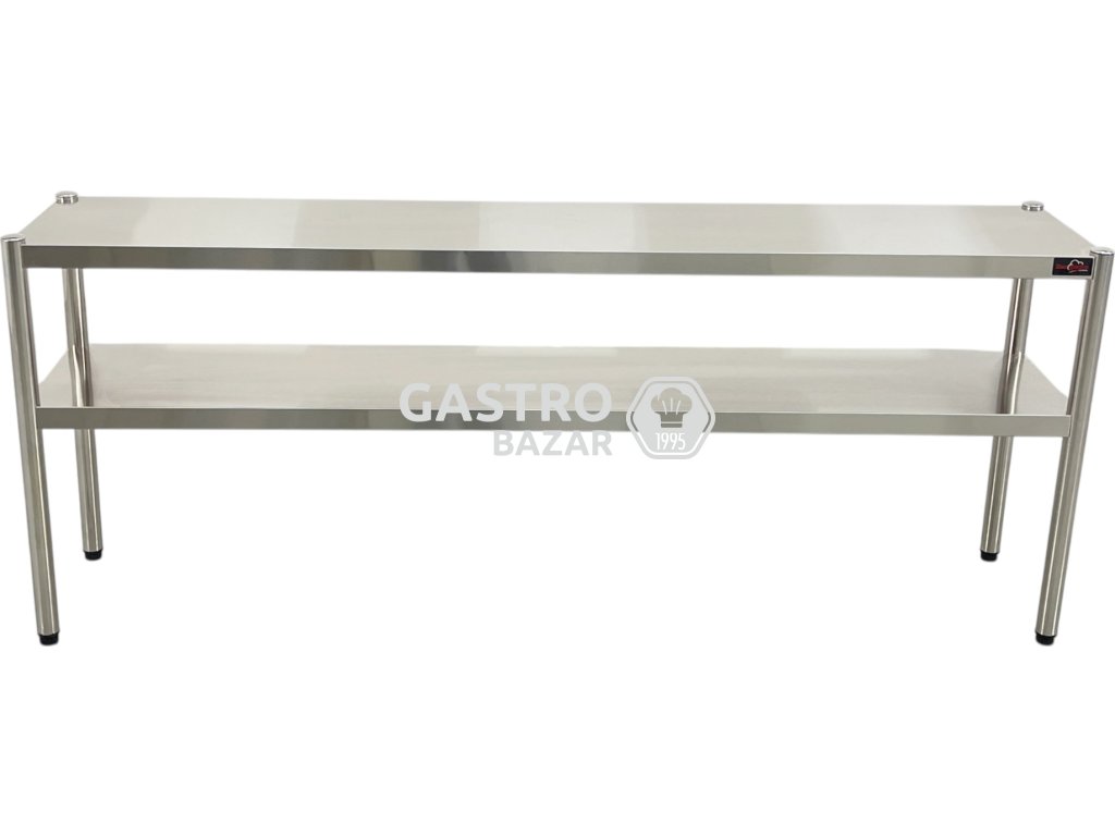 Funkčná a robustná nadstavná polica určená pre profesionálne kuchyne a gastronomické prevádzky. Ideálne na inštaláciu nad pracovnými stolmi, kde umožňuje prehľadné a hygienické uskladnenie riadu, surovín či pomôcok. Dvojpolicové prevedenie zvyšuje využiteľný priestor bez obmedzenia pracovnej plochy.