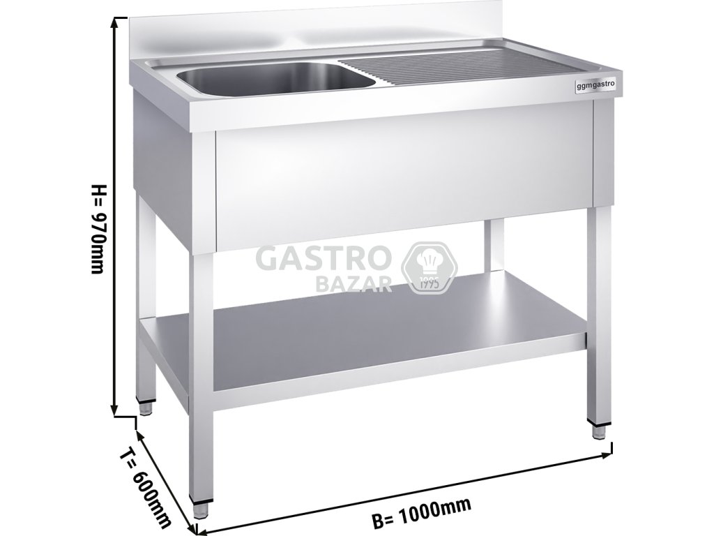 Nerezový drez s policou 1,0 m, 1 umývadlo vľavo, hĺbka 60 cm