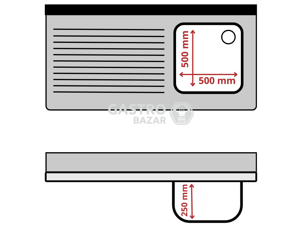 · 1× nerezový umývací stôl PREMIUM s jedným drezom
