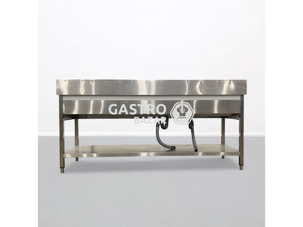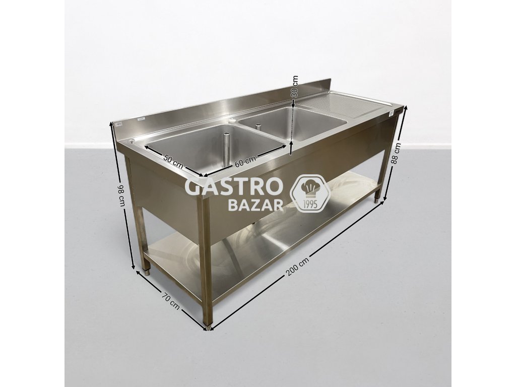 Nerezový dřez - se spodní policí - 2,0 m - 2 dřezy vlevo - D 60 x Š 50 x H 30 cm