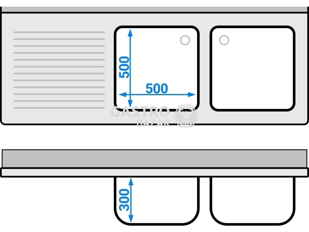 - Veľkosť drezu : 500 mm (dĺžka) x 500 mm (šírka) x 300 mm (hĺbka)