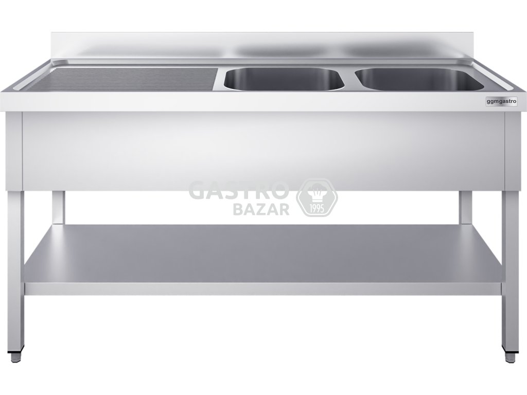 Nerezový drez so základňou 1,8 m, 2 umývadlá vpravo, hĺbka 70 cm