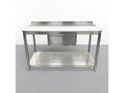 Nerezový pracovní stůl PREMIUM se spodní policí a zadním lemem - 1200 x 600 x 870 mm