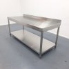 - Nerezový pracovní stůl PREMIUM se spodní policí a zadním lemem