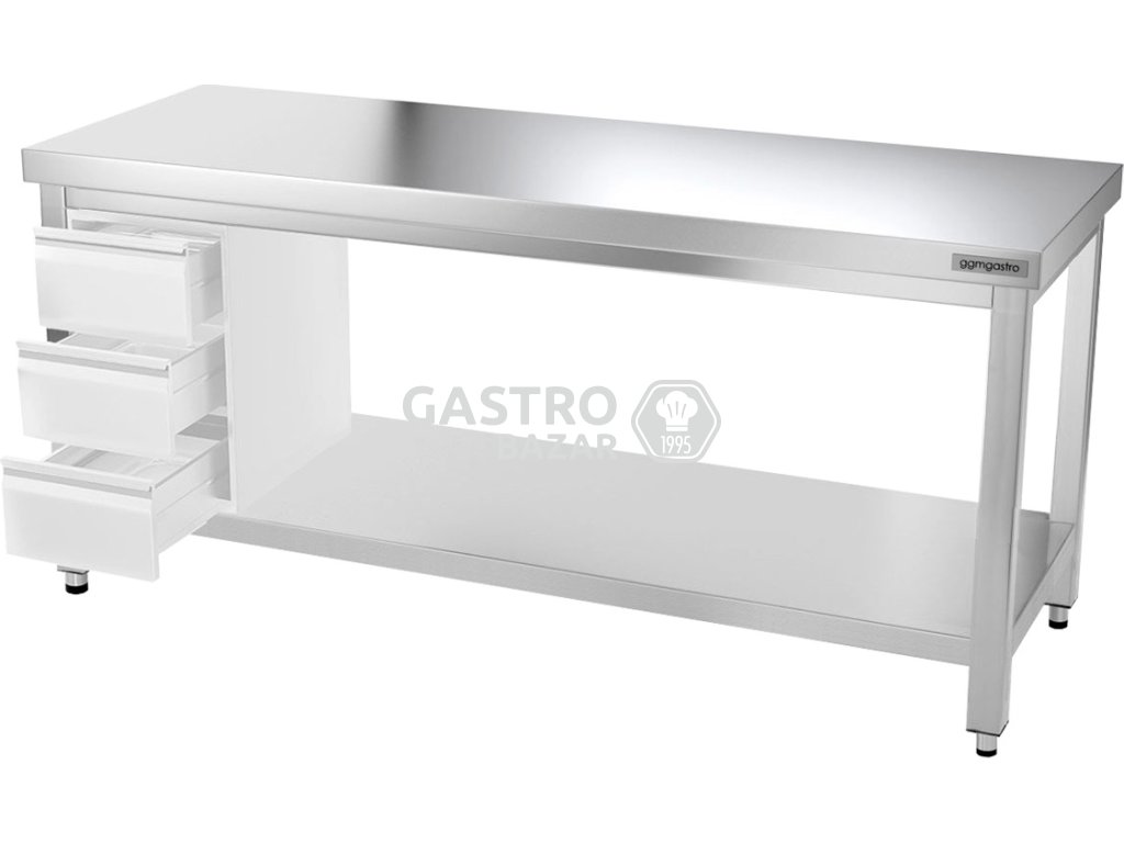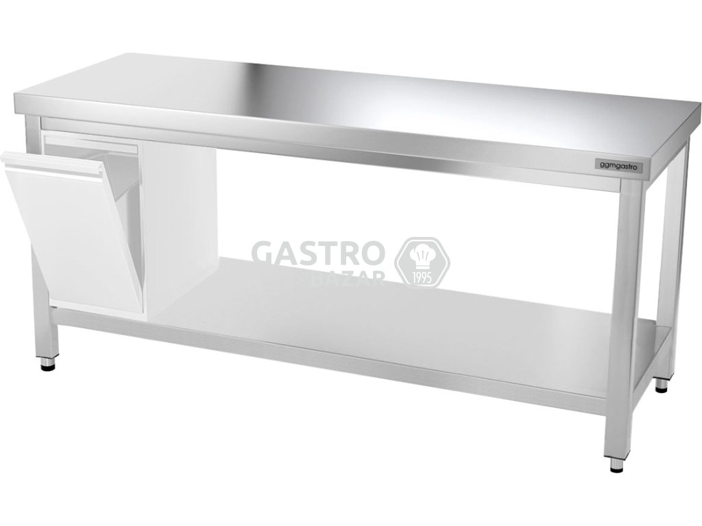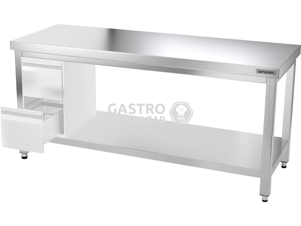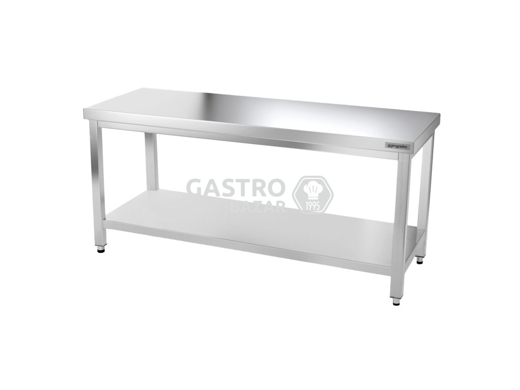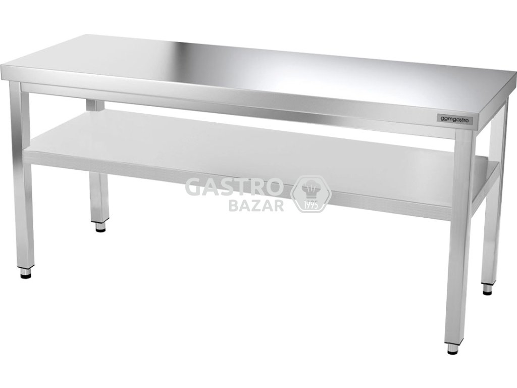 • Nerezový pracovný stôl so spodnou policou bez zadného lemu